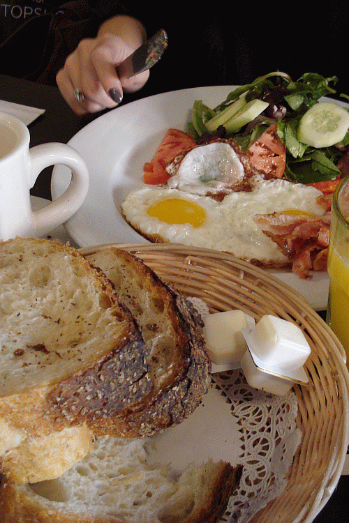 Le lendemain matin, on s’offre une petite promenade dans Soho et on va bruncher chez 12 chairs, petit restaurant discret de quartier où mur de briques et bois brun se mélangent parfaitement. Dommage que les Américains soient obsédés, pour je ne sais quelle raison, par la ventilation… je maudis encore les ventilateurs au dessus de nos assiettes!