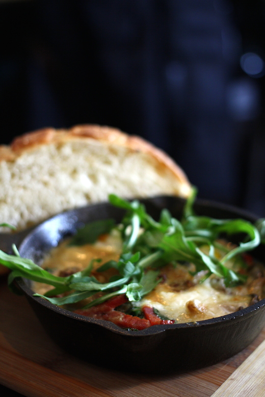 Au menu : une casserole de chorizo, œufs, crème, épinards, pleurotes et pommes de terre; un pain doré dodu aux fruits, érable et noix caramélisées ou encore un canard croustillant sur salade de roquette avec fromage du Québec, sauce au foie gras, œuf de canard au plat, noix caramélisées et pain brioché. Après le « Trop d’beauté » des bobos, je lance le mouvement du « Trop d’plaisir » (avec évanouissement potentiel à la clé).