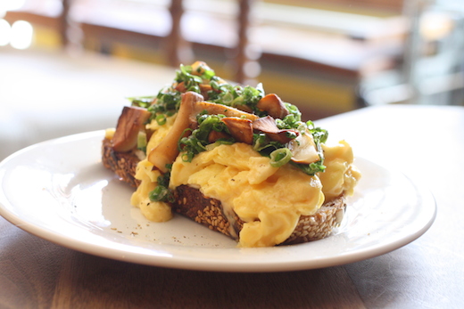 Le défunt Café Comme Chez Soi a laissé place à la Maison Sociale, un espace qui offre différentes ambiances, un 3 en 1 : une buvette, un café de quartier et un restaurant. Le lieu est très spacieux, tout à fait dans l’esprit Mile End avec ses murs de briques, ses tables et son parquet en bois franc, ses touches vintage (big up à la station de radio, un peu moins aux émissions qui y passent… le son est trop fort). Le brunch, servi depuis quelques mois y est très réussi : une tartine aux champignons, ricotta maison et œufs brouillés, suivie d’une salade de haricots verts, boulgour, radicchio, noisettes, feta et œufs pochés. Des petits plats sans faute, très frais et vraiment goûteux. On reviendra!