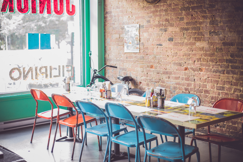 Avec son brunch philippin inspiré des « carinderies » – stands culinaires où l’on vient se restaurer sur les marchés aux Philippines – Junior fait figure d’original sur la très sélect’ rue Notre-Dame Ouest. Ouvert par quatre Philipino-canadiens, l’atmosphère y est à la fois branchée, familiale et bonne franquette. On y sert des plats de type « comfort & street food » dans un décor de bric et de broc chaleureux et industriel. Pensez chaises récupérées et colorées, mur de briques et coin « diner » avec de hauts tabourets, le tout saupoudré d’une musique live assurée par des DJs le week-end. À la carte, craquez pour les décadentes gaufres au poulet frit généreusement arrosées de sirop d’érable. Les plats plus traditionnels à base de riz comme le « longsilog » raviront sans aucun doute les appétits voraces. Simple et sympa!